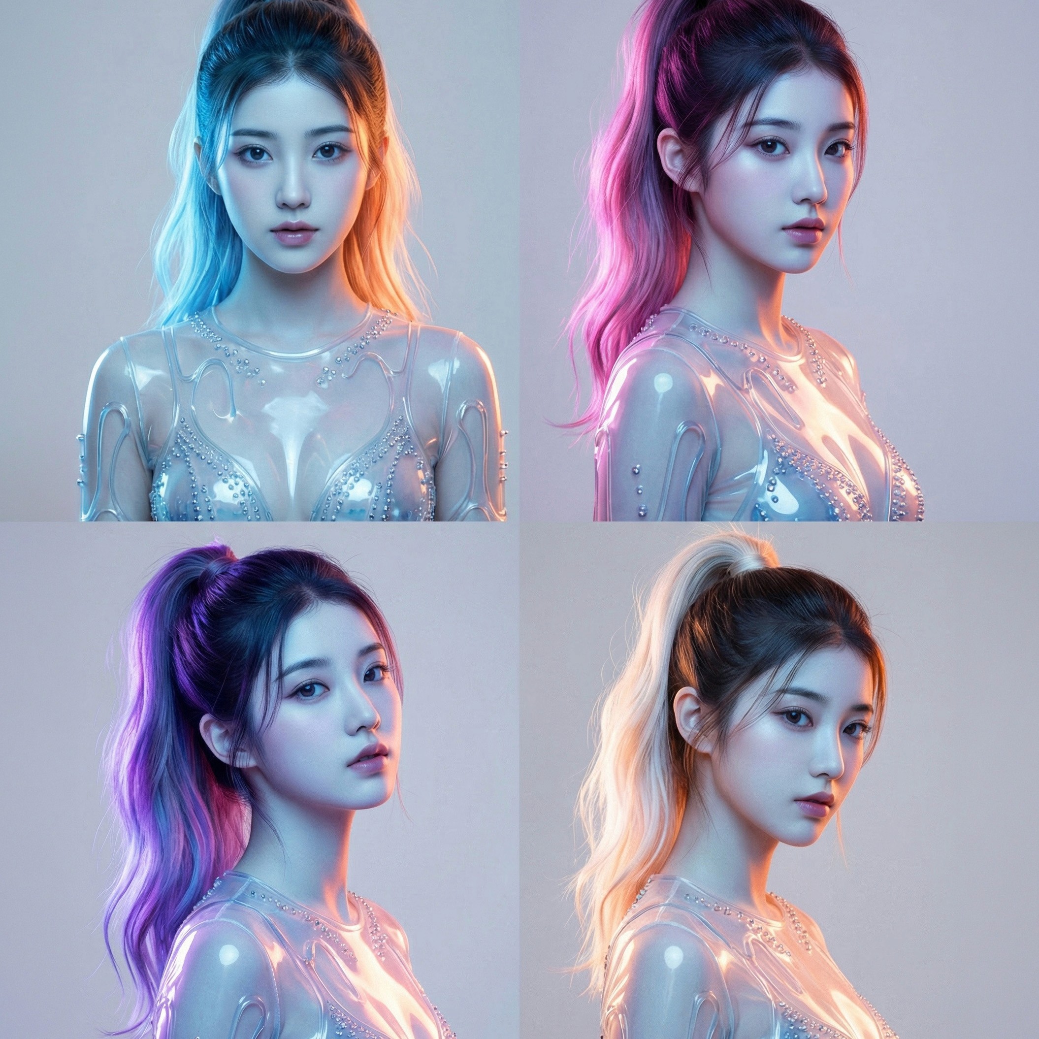 Where algorithms learn character. This study explores AI-generated consistency in motion—capturing subtle variations of gesture, rhythm, and light as a single identity unfolds across the contact sheets. The character unfolds and revealing a futuristic elegance framed by deliberate minimalism.